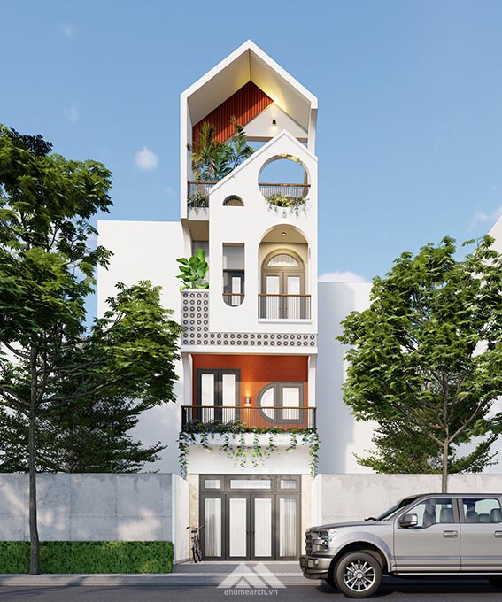 Với quy tắc 60 – 30 - 10 theo đó 60 chính là màu sắc chủ đạo của mặt tiền nhà ống, 30 là màu sắc cảu những phần mái, khung cửa, lan can còn 10 là sắc màu của những điểm nhấn nhằm tạo nét riêng biệt, độc đáo và mới lạ của ngôi nhà.