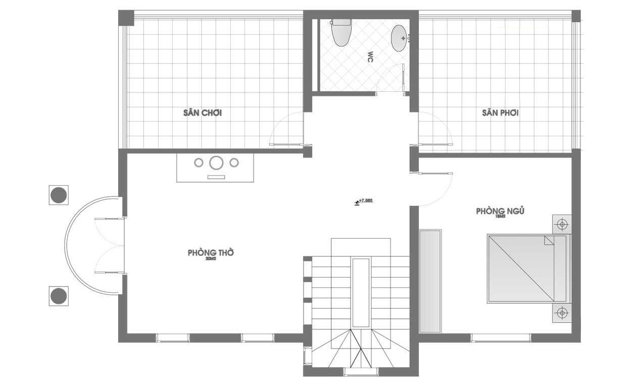 Lầu 2 gồm 2 sân phơi tạo nên sự thông thoáng, phòng thờ hướng cửa ra bên ngoài phù hợp với phong thủy, trong khi đó 1 phòng ngủ đầy riêng tư với những cửa sổ giúp đón ánh sáng thiên nhiên từ bên ngoài vào trong được tốt nhất.