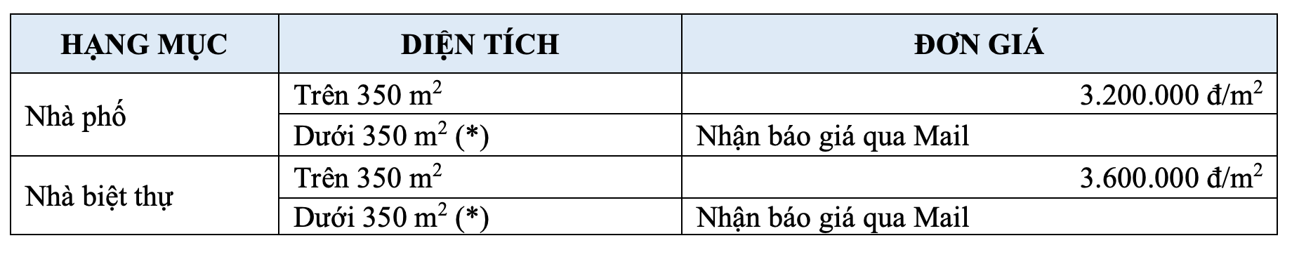 1. BẢNG ĐƠN GIÁ THI CÔNG XÂY DỰNG