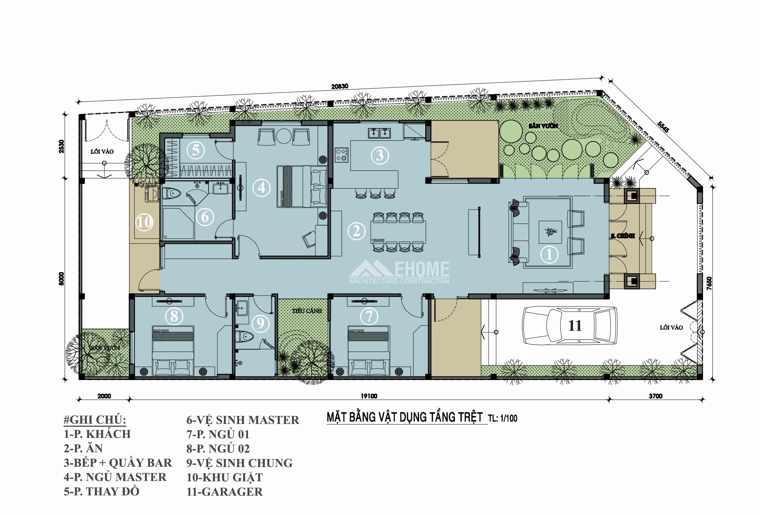 BIỆT THỰ 1 TẦNG-3 PHÒNG NGỦ