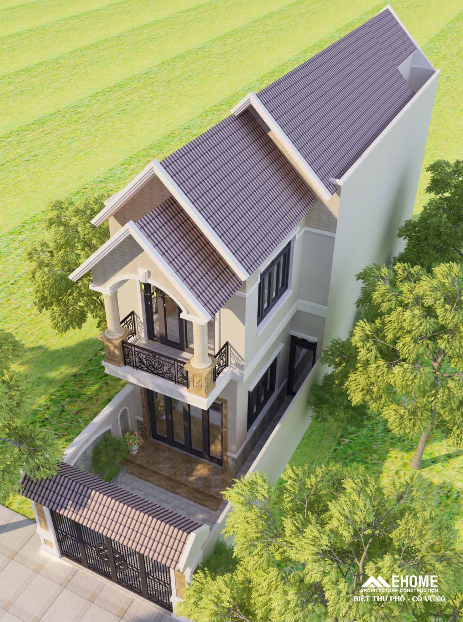 Cùng ngắm mẫu biệt thự 2 tầng mái thái đẹp EHome Arch đã thiết kế và thi công trọn gói nhà tại phường 15, Quận Tân Bình.