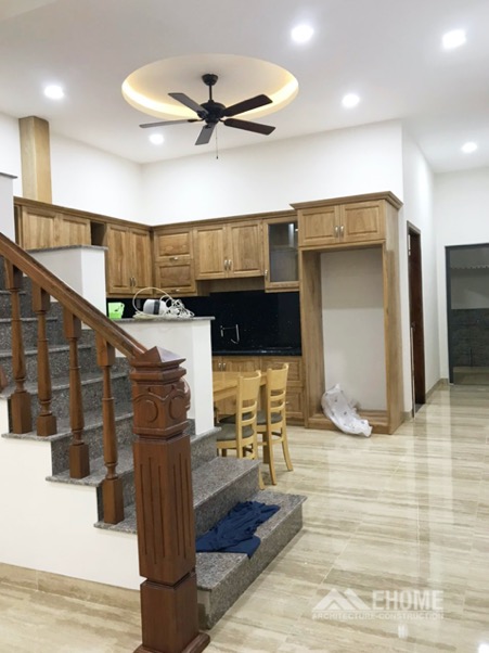 EHome Arch đã hoàn thành phần thô và hoàn thiện sau thời gian thi công là 3 tháng. Thời gian làm thủ tục xin phép xây dựng mất 30 ngày.