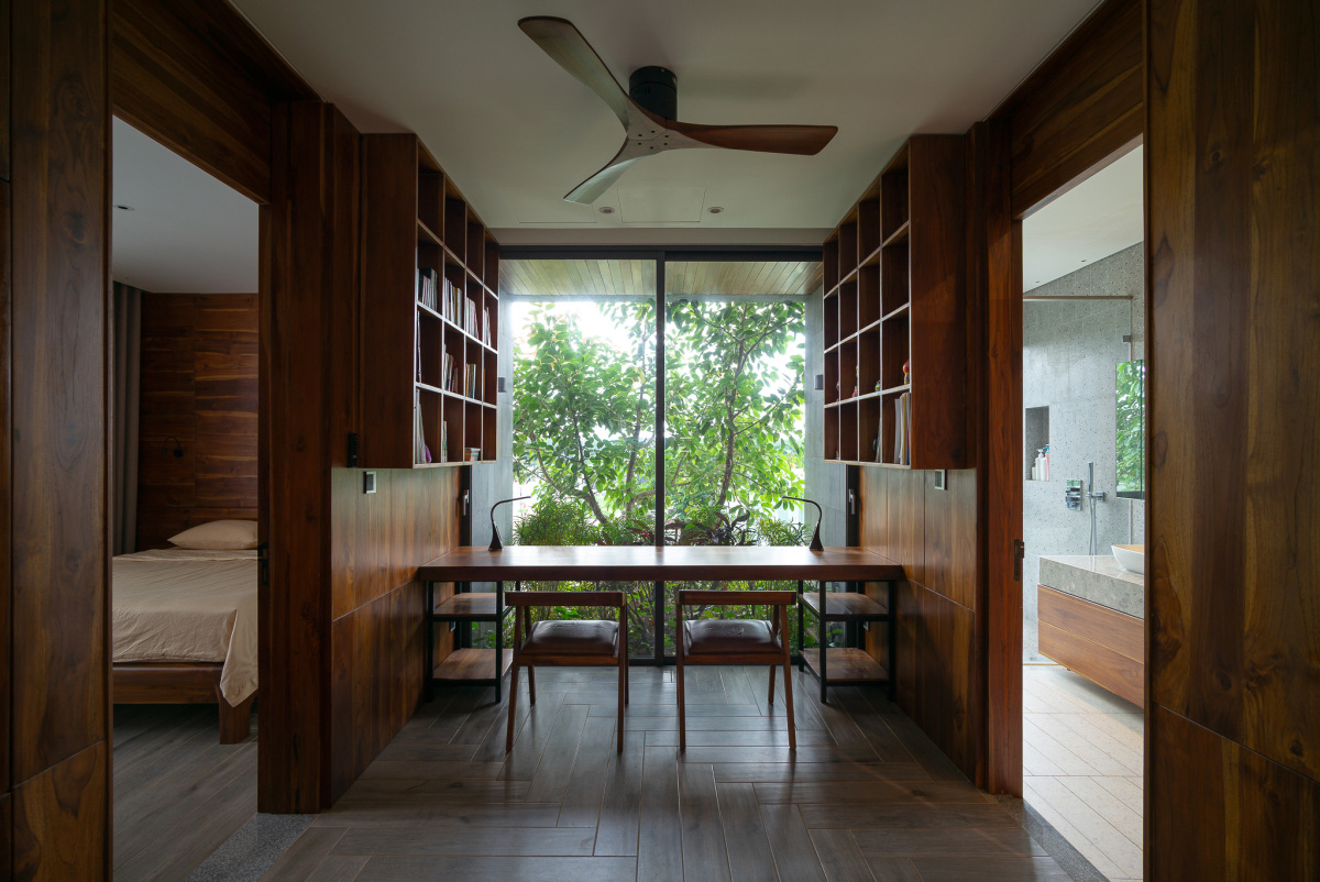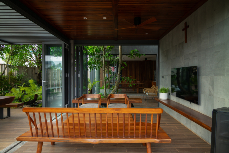 Thiên nhiên là ngôn ngữ xuyên suốt “tác phẩm” kiến trúc này và không gian sống bên trong được kiến trúc sư tối ưu để ở góc nhìn nào các thành viên trong gia đình cũng cảm nhận sự xanh mát, yên bình và thư thái.