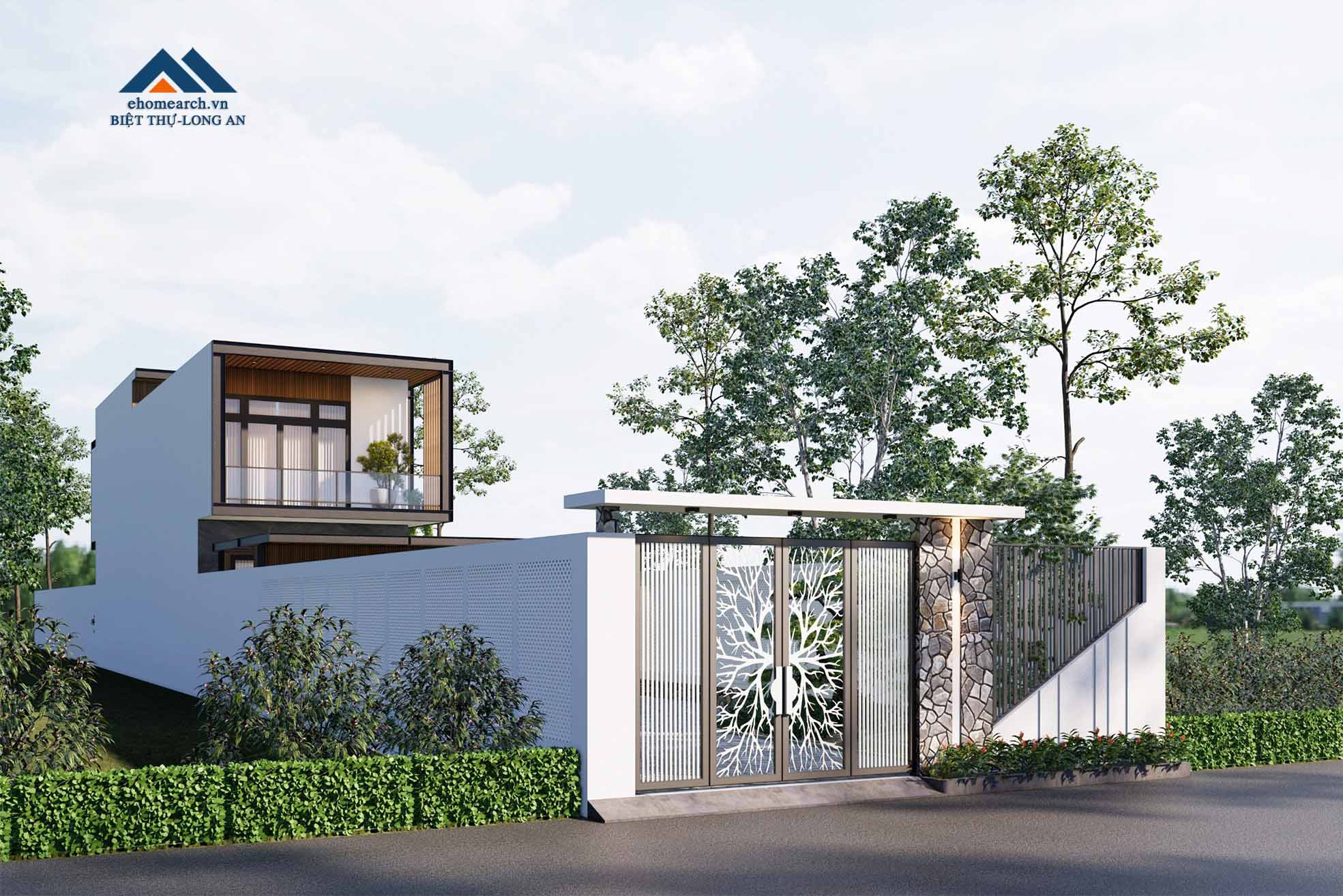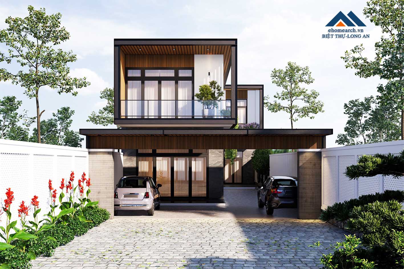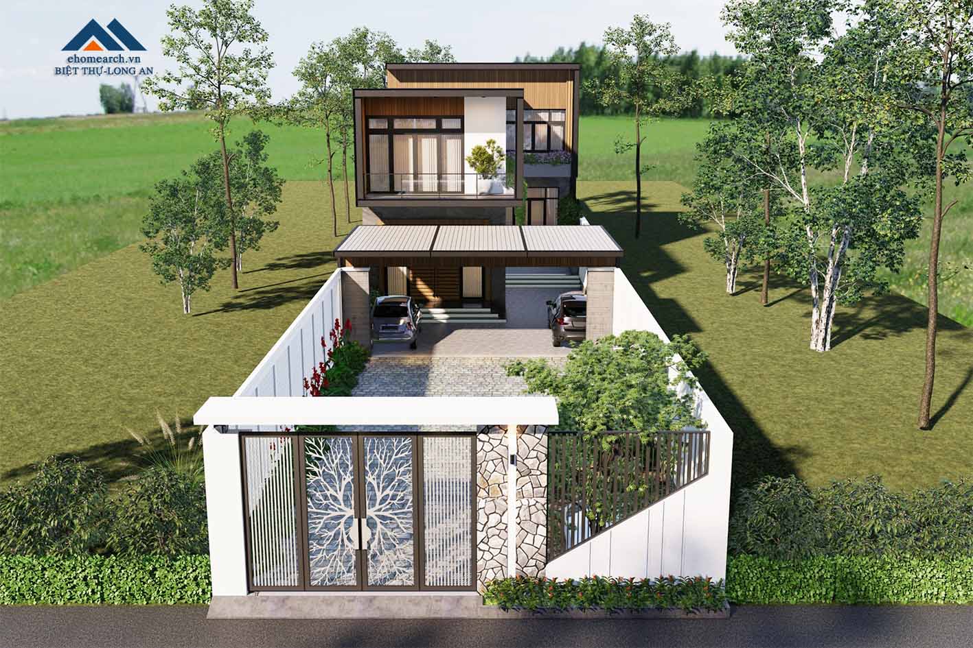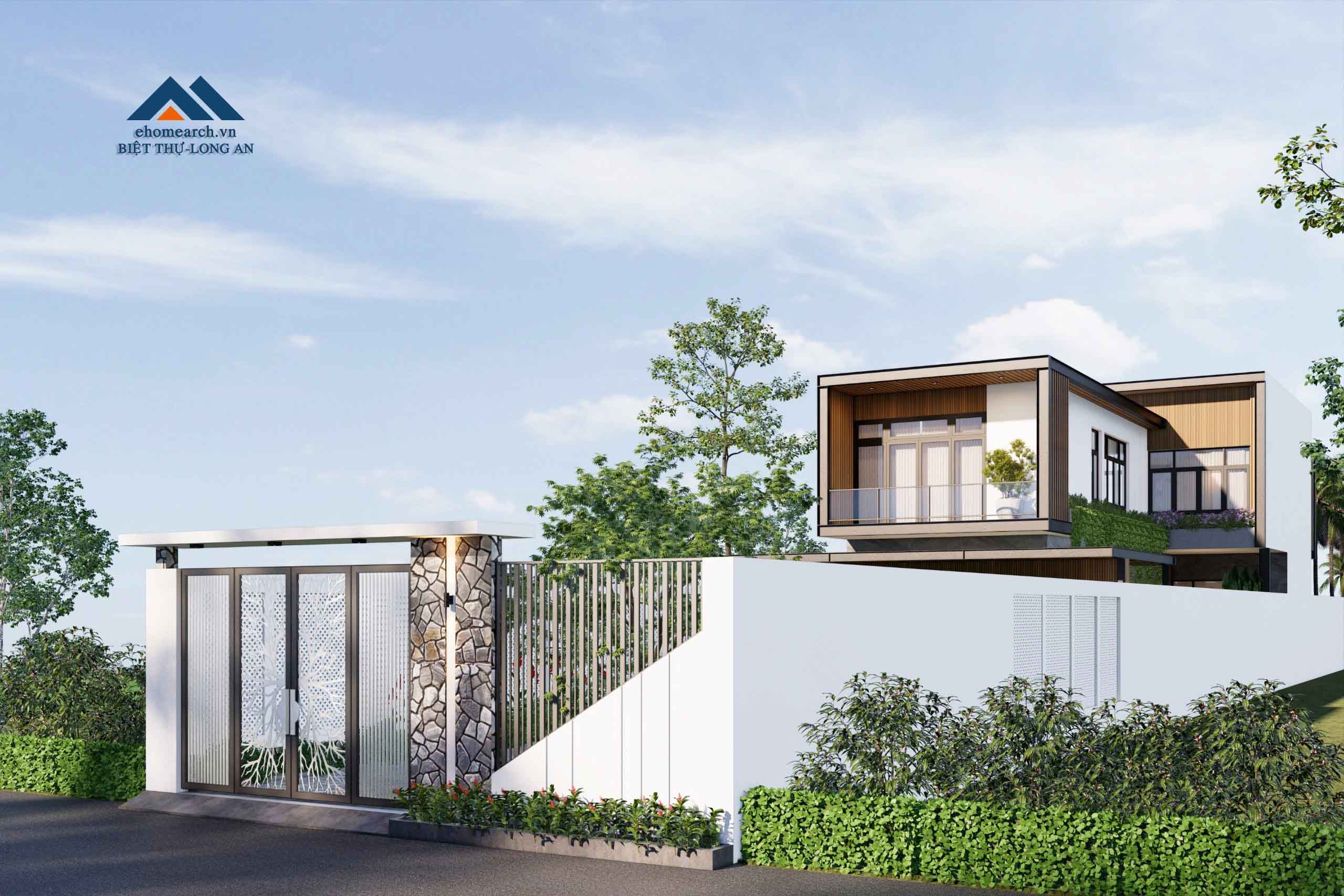 -Khung thép sơn màu xám Xinfa kết hợp với gỗ Conwood ngoài trời và cửa nhôm Xinfa kính Cường lực tạo nên nét hiện đại cho Công trình.