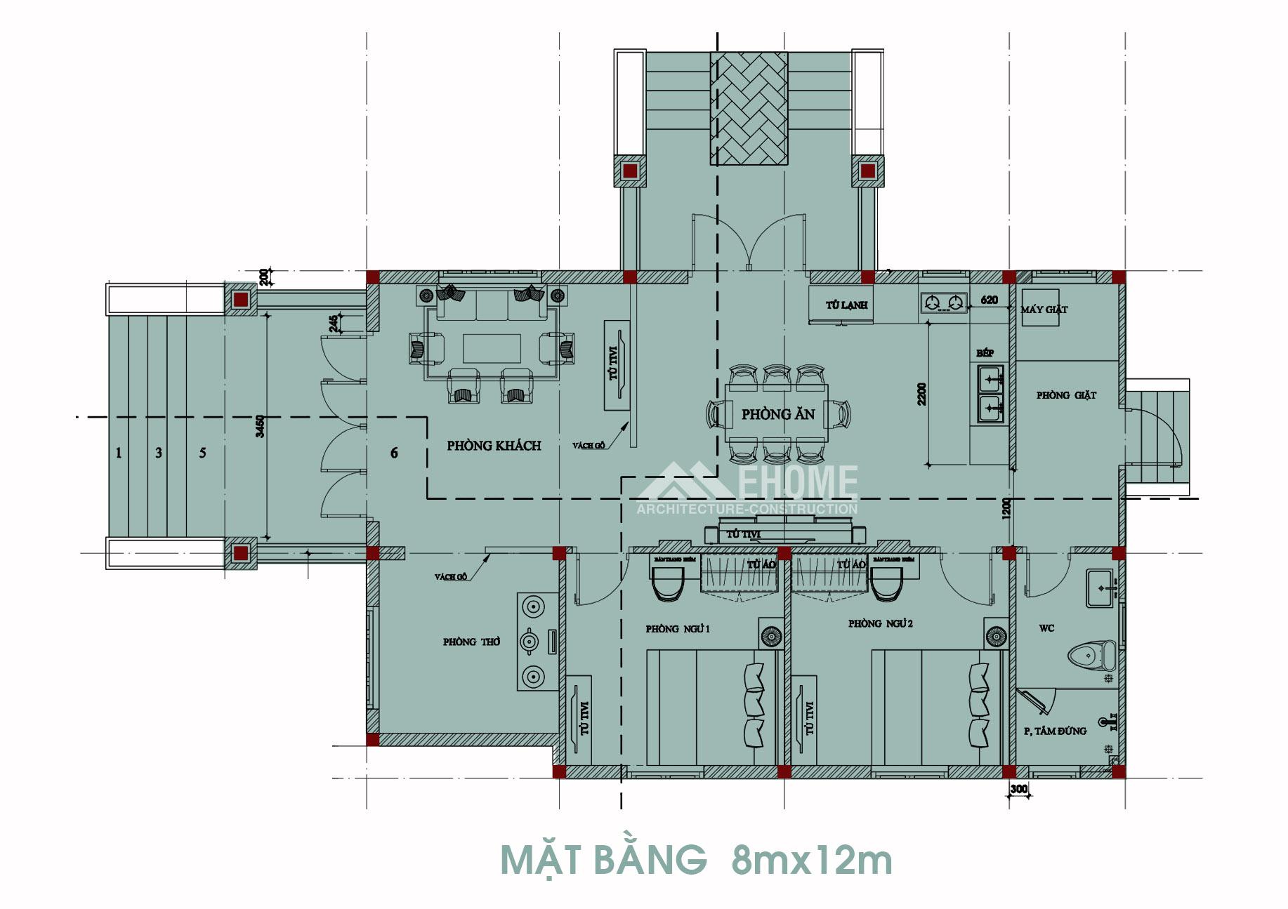 Mặt bằng biệt thự 8x12m