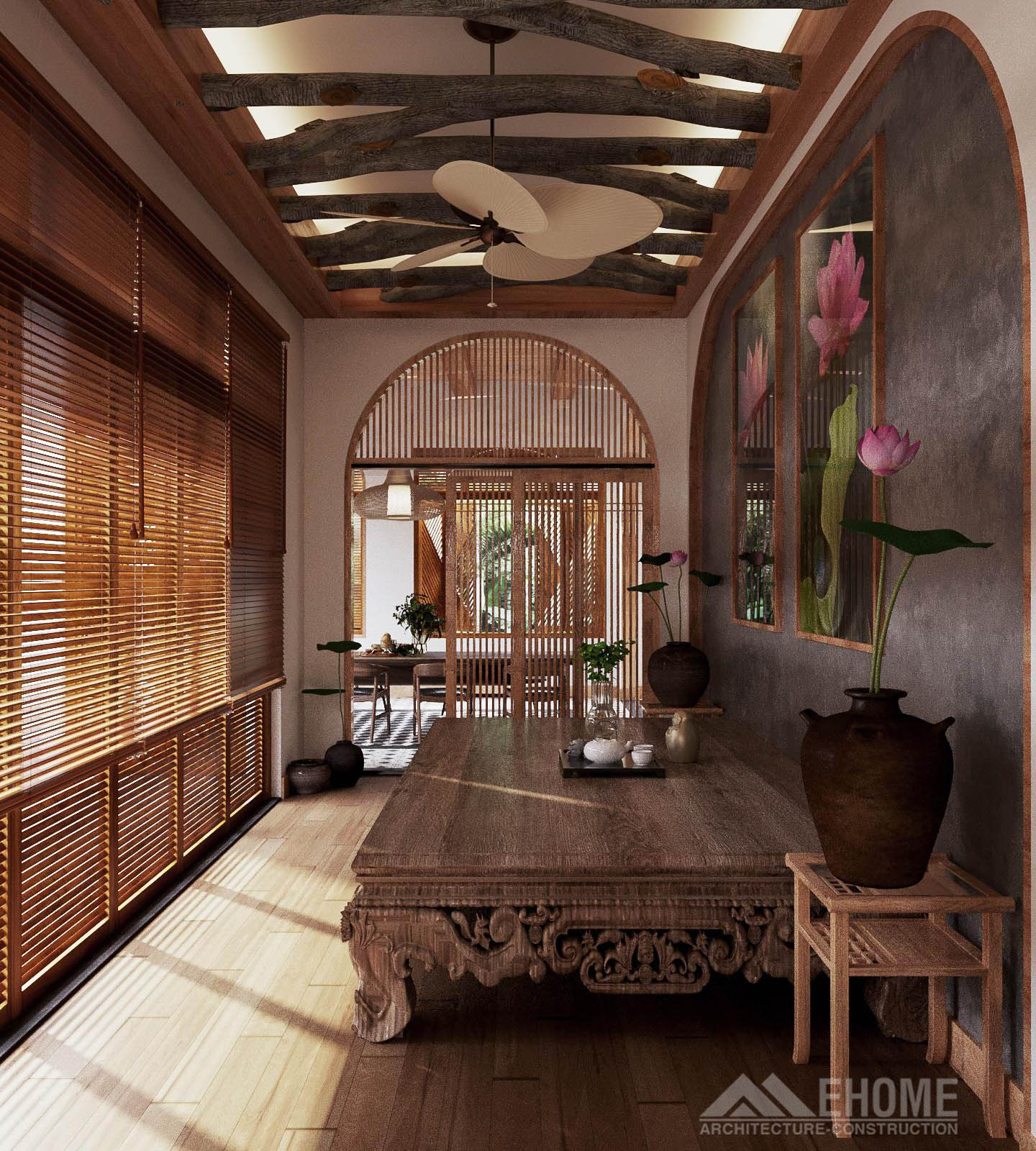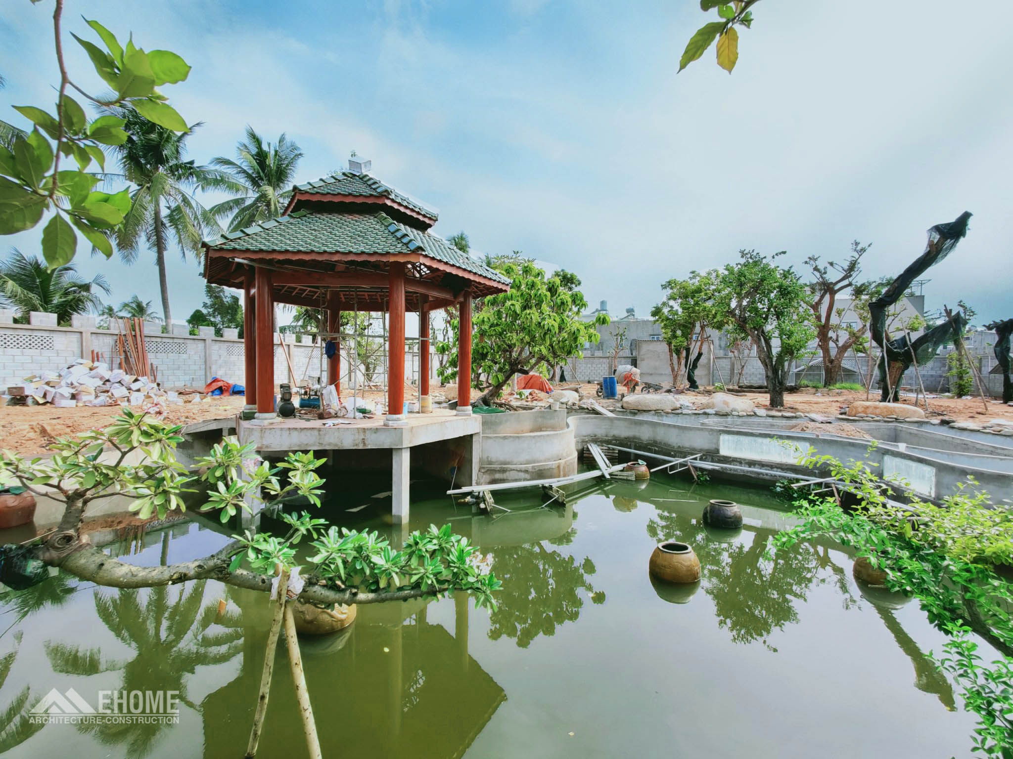 Biệt Thự Vườn 2 Tầng mang đậm nét Kiến trúc Á Đông, chi tiết hoa văn là kiến trúc Cổ Việt Nam, Chủ Nhân của Mẫu Biệt thự này còn rất là trẻ thuộc cuối thế hệ 8X nhưng Anh lại có đam mê với Kiến Trúc Truyền Thống Việt Nam, Anh Giành Tình Yêu Cho SEN, Cho Thiên Nhiên Cây cỏ, Đặc biệt anh rất mộ Phật Giáo.