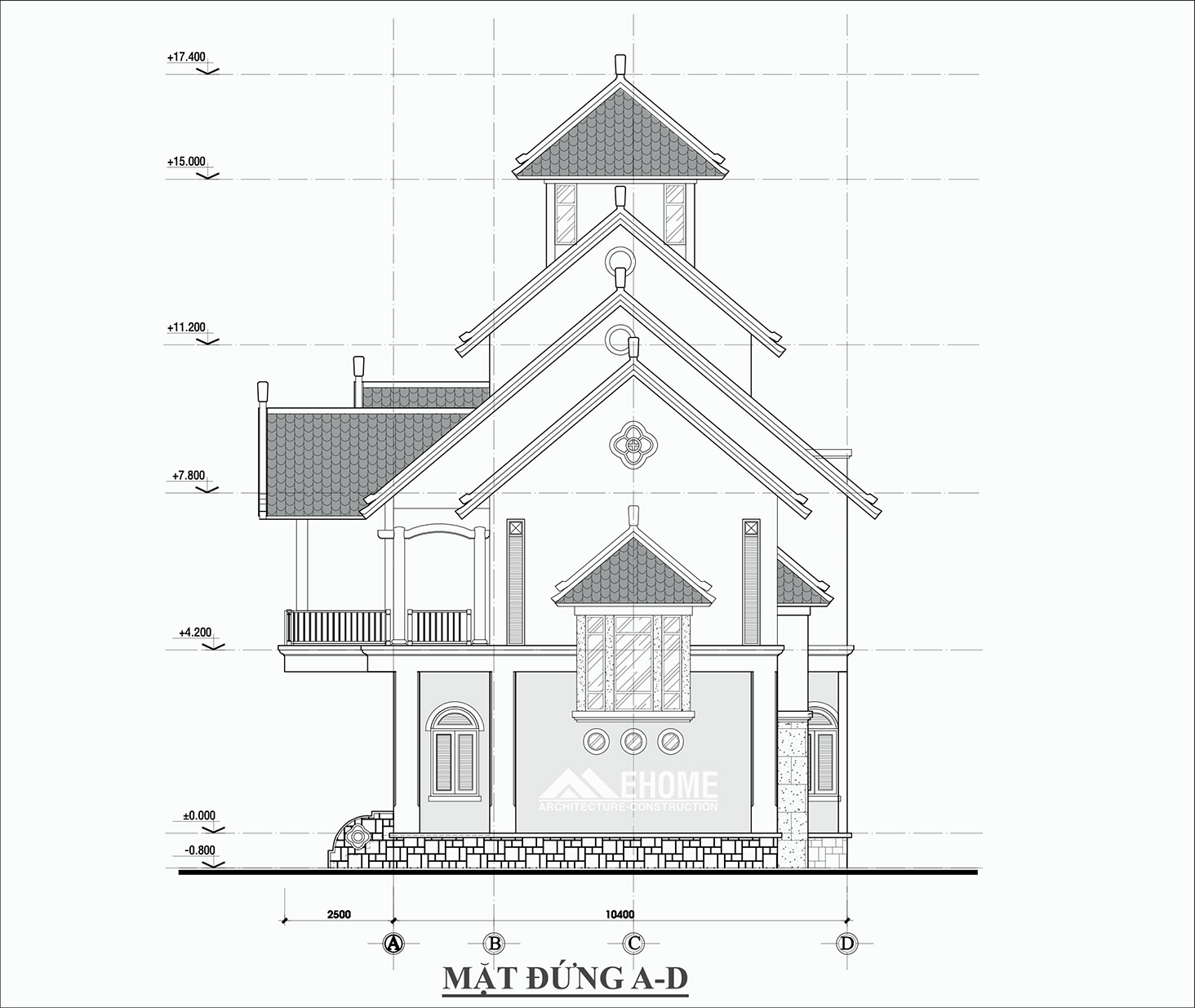 - Mái Ngói có Chóp Parorama là điểm nhấn nổi bậc