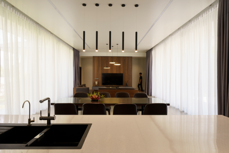 Biệt thự không chỉ hướng đến kết nối với thiên nhiên mà còn cả con người. Với quy mô 1 tầng, ngôi nhà đã tạo sự liên kết giữa các thành viên trong gia đình.