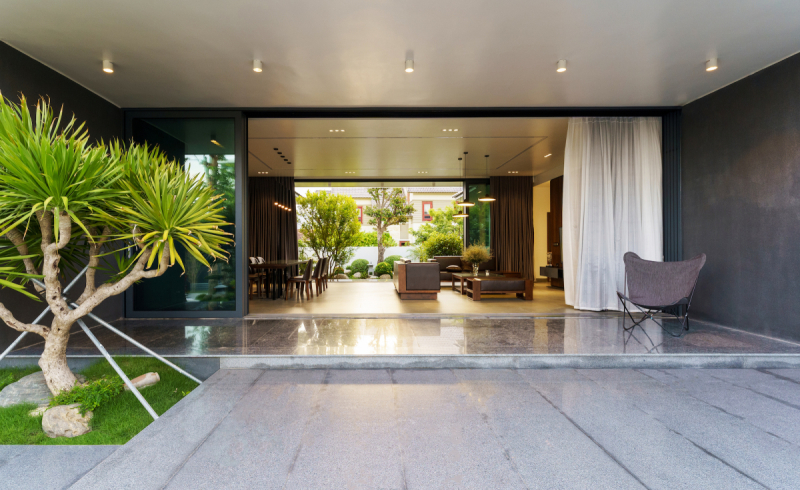 Biệt thự sân vườn kiểu Nhật thiết kế khoảng thềm rộng mang đến không gian thư giãn lý tưởng để ngắm nhìn thiên nhiên bên ngoài.