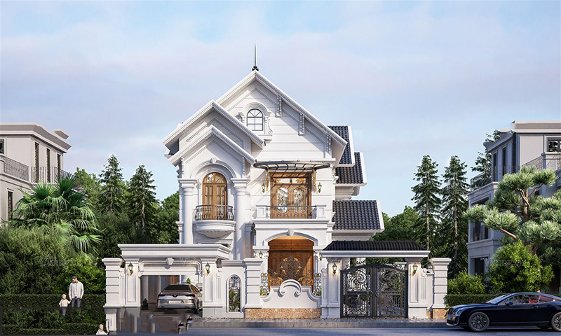 Màu trắng luôn là sắc màu được yêu thích đối với những công trình biệt thự tân cổ điển.