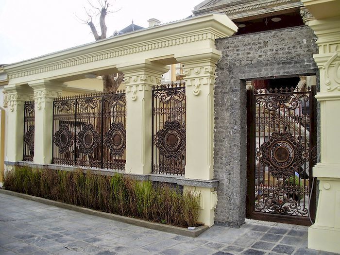 Nếu những công trình nhà cấp 4 ở quê việc xây dựng hàng rào bằng chất liệu gạch phổ biến thì ở những gia đình có điều kiện, công trình biệt thự có thể lựa chọn những mẫu hàng rào bê tông kết hợp với sắt mỹ thuật…
