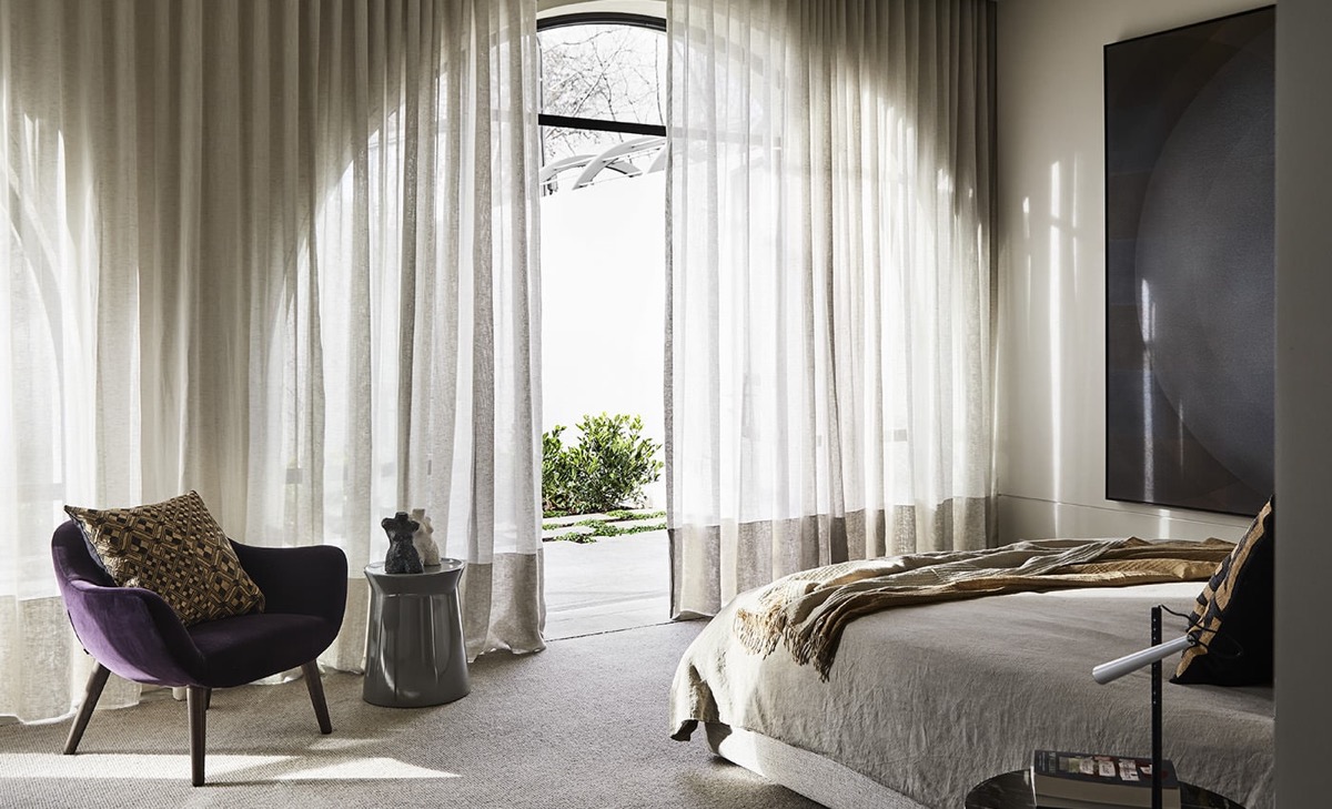 Rèm cửa vừa che ánh sáng vừa mang đến sự lãng mạn cho không gian phòng ngủ.