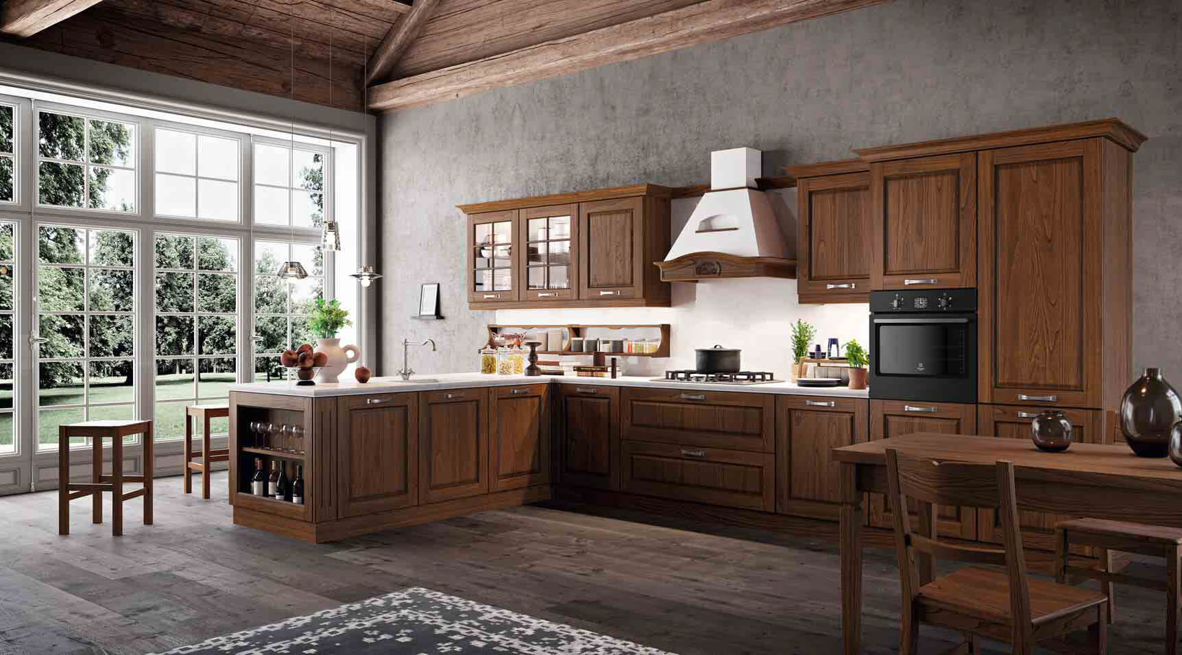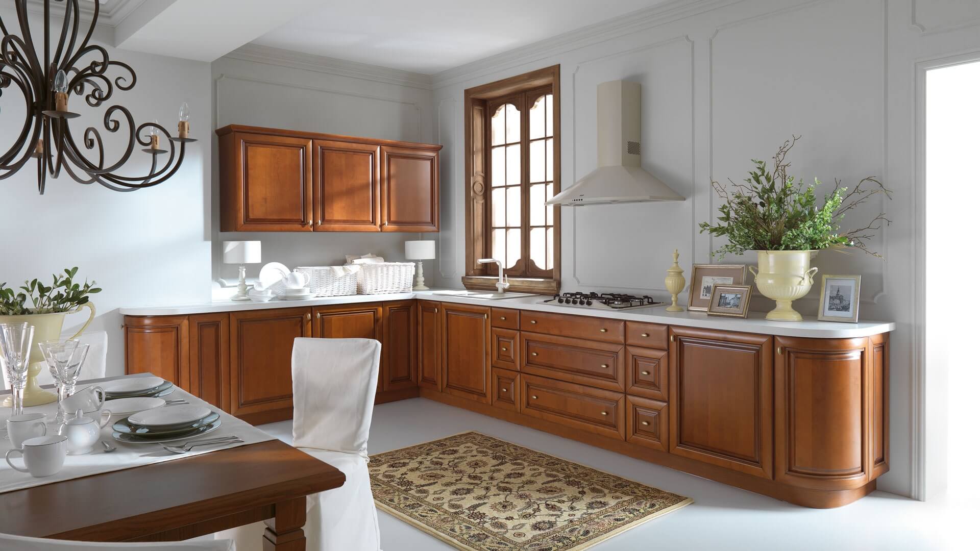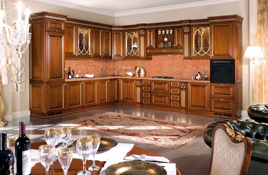 Trong khi đó đối với những gia đình có phòng bếp rộng, sang trọng và đặc biệt yêu thích vẻ đẹp tự nhiên, ấm áp có thể lựa chọn tủ bếp gỗ tự nhiên. Bên cạnh đó thì những nhà bếp được thiết kế theo phong cách cổ điển thì nên lựa chọn chất liệu gỗ tự nhiên tạo vẻ đẹp tương đồng hài hòa và tương xứng.