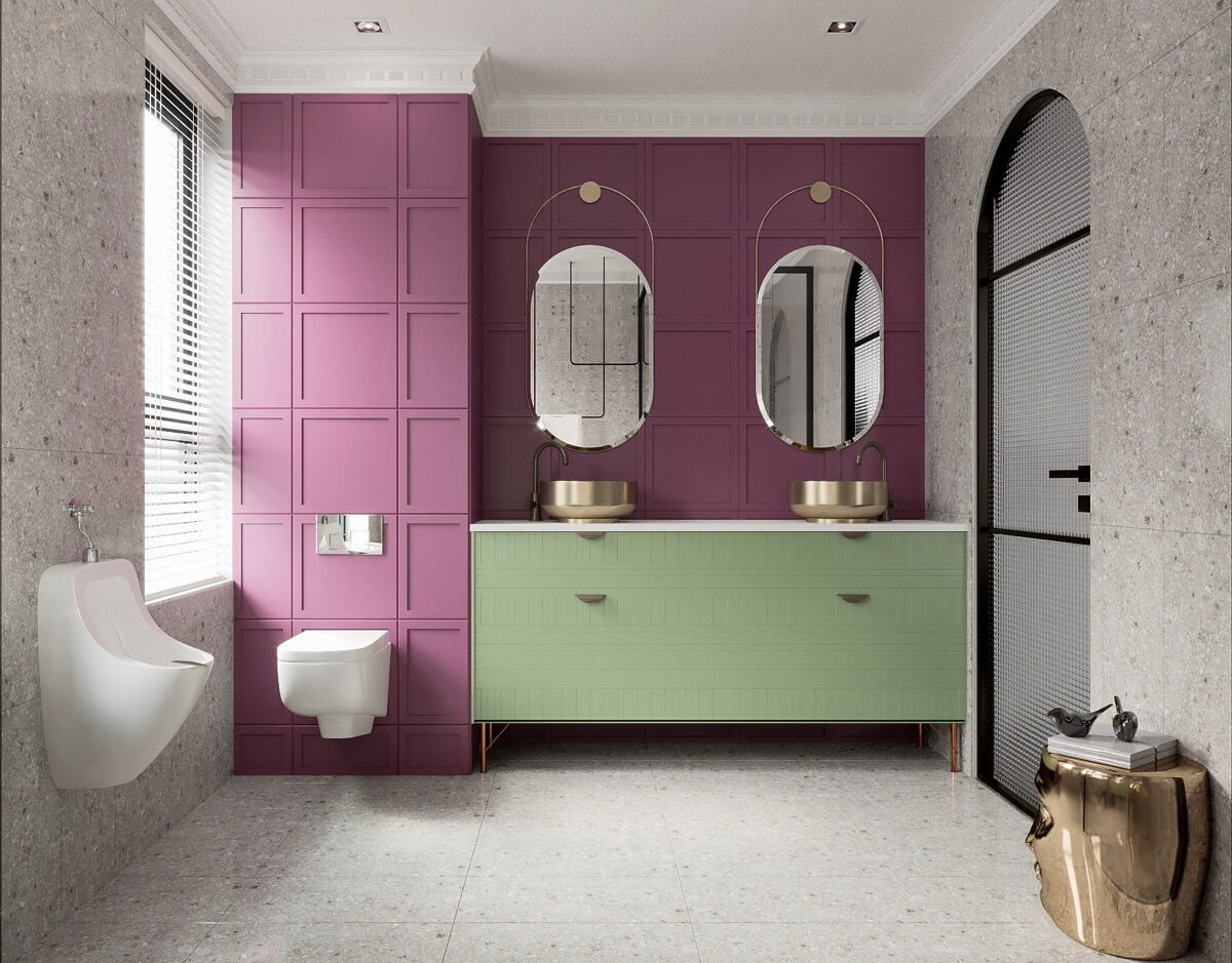 Những gam màu hồng cam, đỏ cao, xanh đậm….được yêu chuộng trong thiết kế nội thất nhà ở hiện nay. Màu sắc này làm điểm nhấn giúp không gian trở nên sinh động, ấn tượng mang tính nghệ thuật cao.