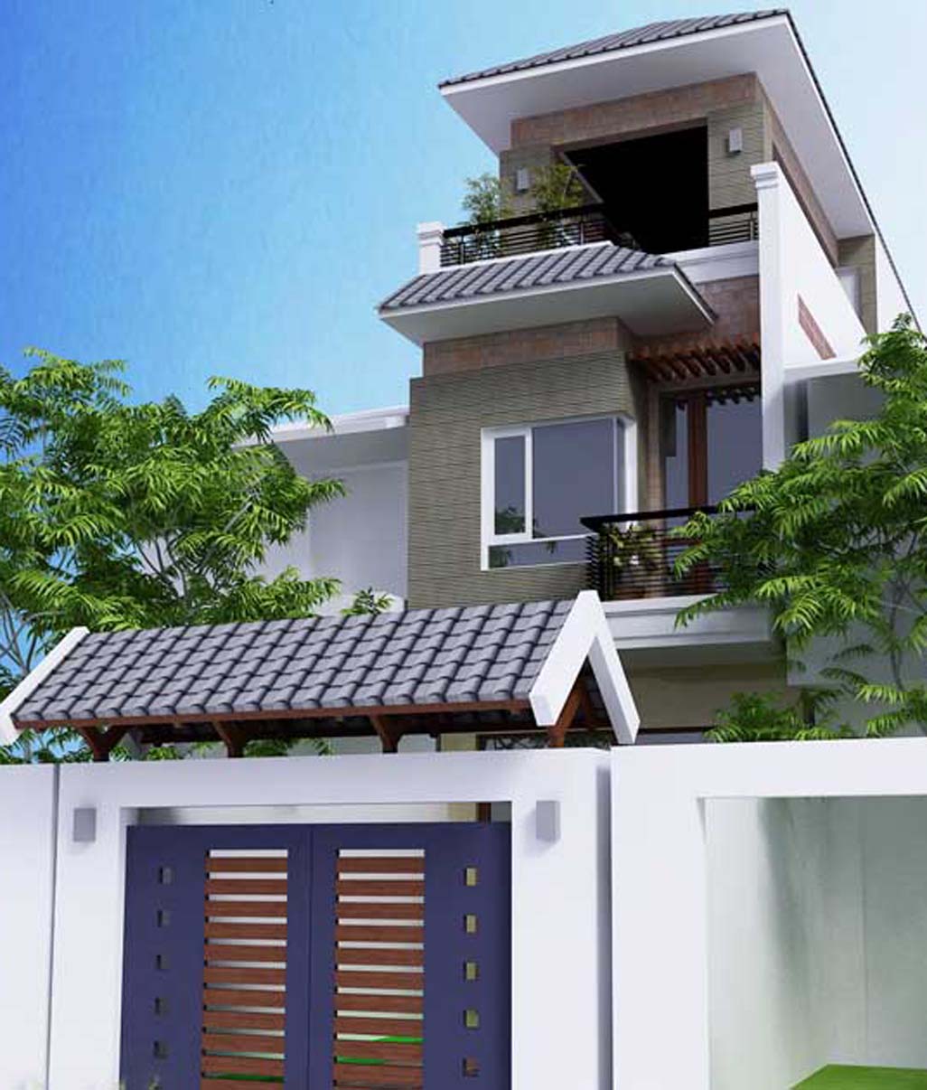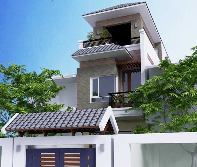 Phong cách thiết kế: Biệt thự Phố, sân trước rộng rãi dài 8mx4m, cổng rào mái ngói