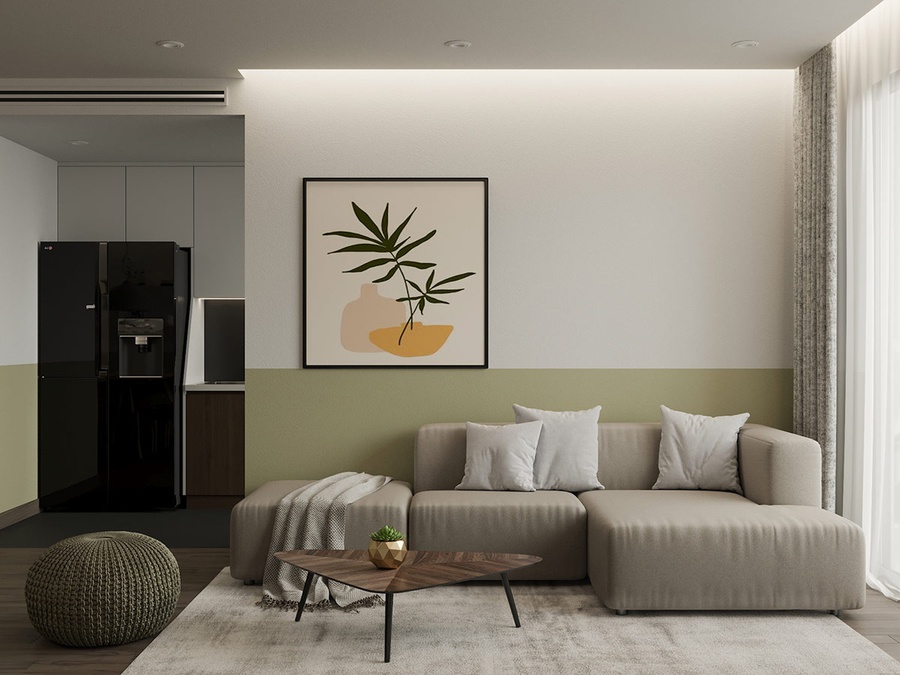 Ví dụ nếu như phòng khách bạn màu trắng làm chủ đạo bạn có thể chọn một điểm nhấn màu sắc bức tường ở đằng sau ghế sofa. Gam màu nổi bật giúp căn phòng trở nên sinh động hơn. Tuy nhiên cần lưu ý không nên kết hợp quá nhiều màu sắc làm căn phòng trở nên rối rắm hơn.